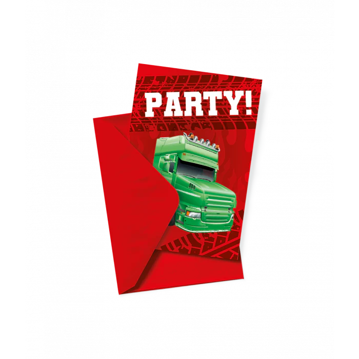 Iemand uitnodigen voor een kinderfeestje kan perfect met de leuke 'Trucks' uitnodigingskaarten!