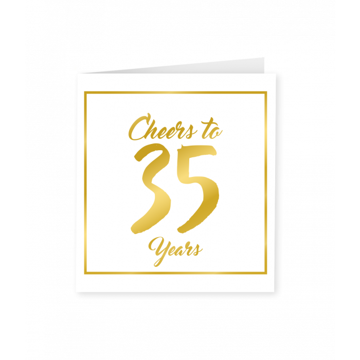 Een 35e verjaardag is een mooie mijlpaal die vraagt om een bijzondere felicitatie. Met deze kaart laat je op een elegante manier zien dat je aan de jarige denkt. De blanco binnenkant biedt alle ruimte om een persoonlijke boodschap en warme woorden toe te voegen.