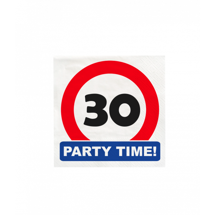 Maak jouw 30e verjaardag compleet met deze feestelijke Party Time servetten in verkeersbord stijl. De set bevat 16 servetten die bedrukt zijn met het bekende verkeersbord en het cijfer 30. Perfect om de feesttafel aan te kleden en handig bij taart, hapjes en drankjes. Combineer de servetten met andere verkeersbord versiering voor een compleet geheel en zorg voor een onvergetelijke verjaardag of jubileum.
