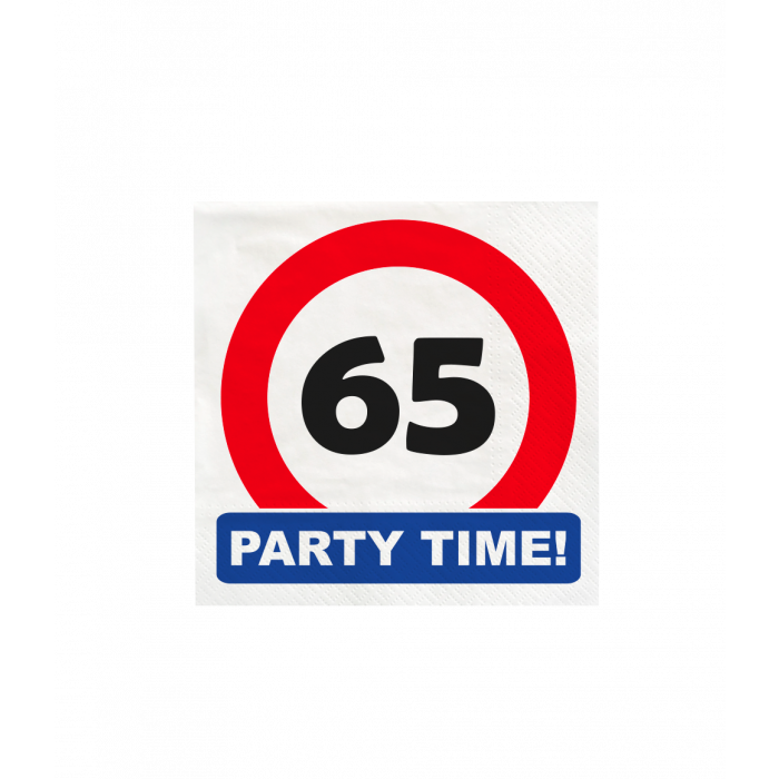 Of je nu een groot feest geeft of een intiem feestje thuis viert, met de Verkeersbord 65 Jaar Party Time Servetten voeg je eenvoudig een vrolijk accent toe aan de feesttafel. Combineer met borden, bekers, ballonnen en slingers voor een compleet verkeersbordthema.
