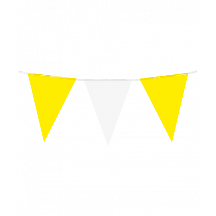Deze geel-witte vlaggenlijn van 10 meter is de perfecte decoratie om een frisse en vrolijke sfeer te creëren. De combinatie van zonnig geel en helder wit zorgt voor een levendige uitstraling, waardoor de vlaggenlijn ideaal is voor verjaardagen, zomerfeesten, sportevenementen en buurtfeesten.