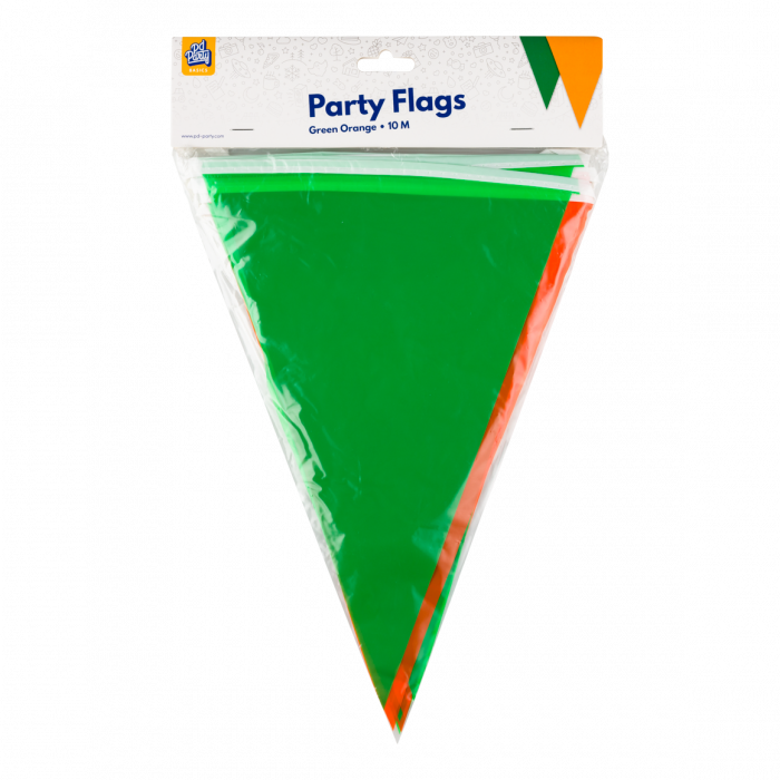 Met deze groen-oranje vlaggenlijn van 10 meter breng je direct een vrolijke en energieke sfeer naar je feest of evenement. De frisse combinatie van groen en oranje maakt deze vlaggenlijn perfect voor themafeesten, sportevenementen, Koningsdag of zomerfeesten waarbij deze kleuren centraal staan.