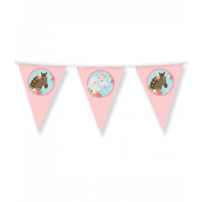 Een kinderfeestje kan niet zonder vlaggetjes en als je deze Vlaggenlijn Paard koopt dan haal je direct een vlaggenlijn met een uniek thema in huis! De vlaggetjes zijn gemaakt van folie en de vlaggenlijn is 10 meter lang.