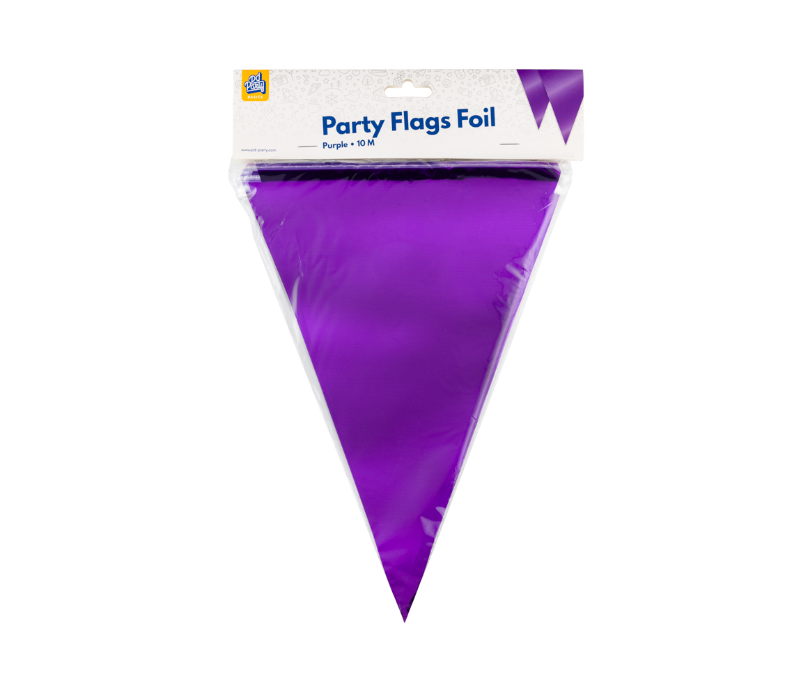 Met deze paarse folie vlaggenlijn van 10 meter haal je een opvallende en feestelijke eyecatcher in huis. De diepe paarse kleur in combinatie met de glanzende folie zorgt voor een luxe uitstraling die perfect past bij themafeesten, verjaardagen, jubilea of zelfs evenementen met een koninklijk tintje.