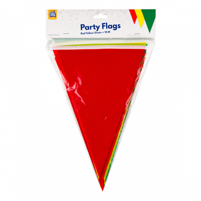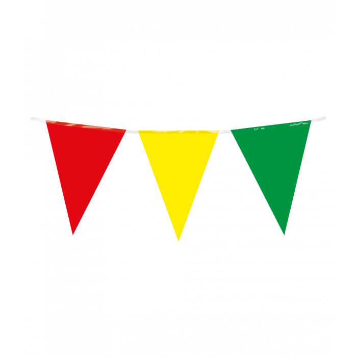 Deze rood-geel-groene vlaggenlijn van 10 meter brengt een levendige en tropische sfeer naar ieder feest. De vrolijke kleurencombinatie maakt hem perfect voor themafeesten, carnaval, zomerse evenementen en vieringen waarbij rood, geel en groen centraal staan.