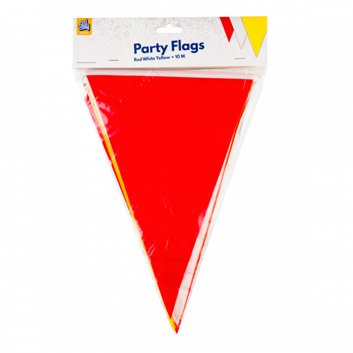 Deze rood-wit-gele vlaggenlijn van 10 meter zorgt voor een vrolijke en feestelijke uitstraling bij iedere gelegenheid. De combinatie van helder rood, fris wit en zonnig geel maakt deze vlaggenlijn perfect voor verjaardagen, sportevenementen, buurtfeesten en themafeesten waarbij deze kleuren centraal staan.