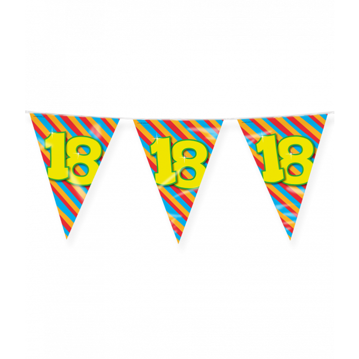 Deze Happy party flags vrolijken door de gebruikte kleuren elk feestje op!