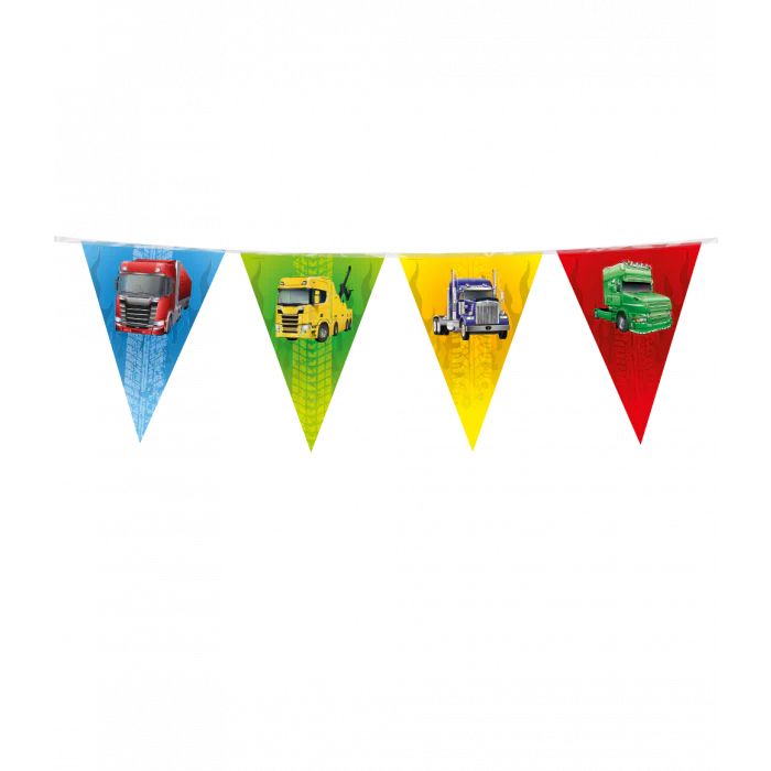 Een kinderfeestje kan niet zonder vlaggetjes en als je deze Vlaggenlijn Trucks koopt dan haal je direct een vlaggenlijn met een uniek thema in huis! De vlaggetjes zijn gemaakt van folie en de vlaggenlijn is 10 meter lang.