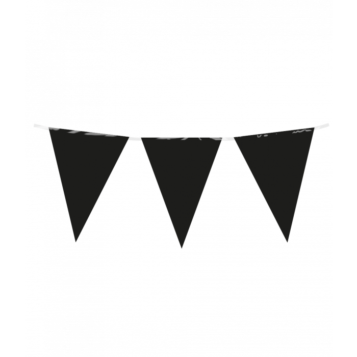Deze zwarte vlaggenlijn van 10 meter is de perfecte keuze voor wie zijn feest een stijlvolle en moderne uitstraling wil geven. De diepe zwarte kleur zorgt voor een stoere en chique sfeer en past uitstekend bij themafeesten, verjaardagen, jubilea of zelfs Halloween en andere seizoensfeesten.