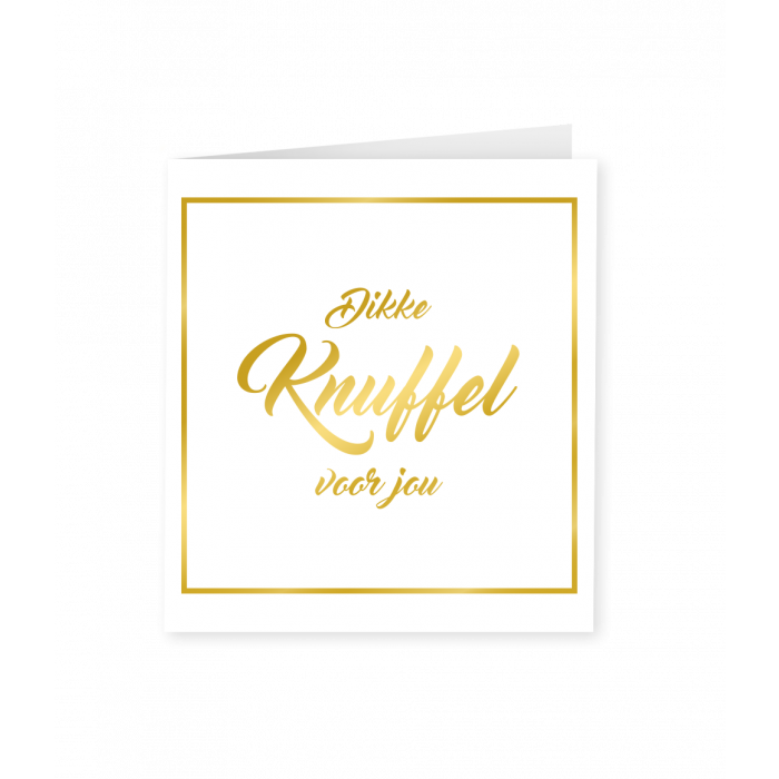 Met de Wenskaart Goud Wit – Dikke Knuffel voor Jou stuur je warmte en troost in een stijlvol jasje. De witte achtergrond met gouden omlijsting en de sierlijke tekst in glanzend goud geven de kaart een elegante uitstraling.