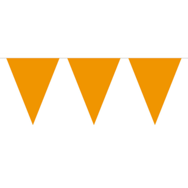Grote vlaggetjes aan deze oranje slinger van het merk Boland. De vlaggetjes hebben een afmeting van 30 x 45 cm. Deze vlaggenlijn is 10 meter lang.