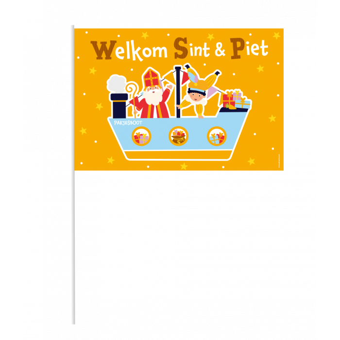 Met deze vrolijke Sinterklaas zwaaivlag heet je Sinterklaas en Piet feestelijk welkom tijdens de intocht of het schoenzetten. De vlag is gemaakt van stevig plastic en heeft een kleurrijk ontwerp met de Pakjesboot, Sinterklaas en Piet. Dankzij het lichte materiaal van 30 bij 22 centimeter is de vlag makkelijk vast te houden door kinderen. Een perfecte toevoeging voor elk Sinterklaasfeest vol gezelligheid en blije gezichten.